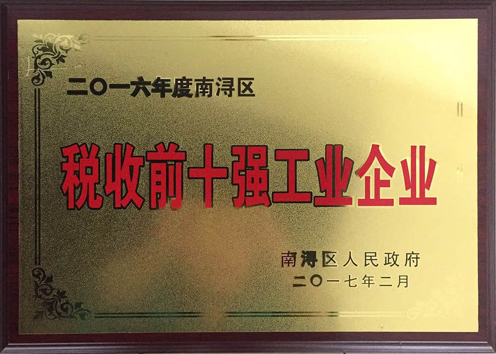 • 2016年度南潯區稅收前十強企業